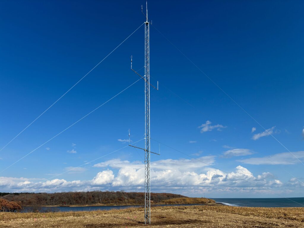 In November, a 30-meter wind observation tower and multiple ground-based meteorological instruments were installed. The tower is equipped with sensors that measure wind direction, wind speed, and turbulence.